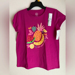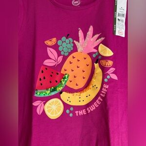 Wonder Nation Kids T-Shirt - Magenta with Fruit Design and sequin accents XL
