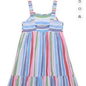 Charming dress with vibrant stripes. Features a playful design. Ideal for casual outings.