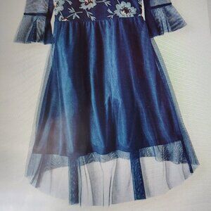 Wonder Nation Navy blue floral mesh embroidered dress with long sleeves (M 7-8)