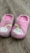 Adorable pink slippers with a cheerful cloud and rainbow. Perfect for cozy indoor fun.