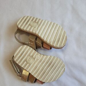 Step into style with these Wonder Nation sandals, featuring a delightful blend of pink and gold hues. Perfect for sunny days, these sandals offer both comfort and a touch of glamour. Ideal for casual outings or special occasions, they are a must-have addition to your footwear collection. has some bite marks as pictured