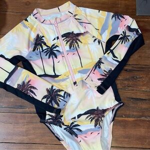 Dive into summer fun with the Wonder Nation Rashguard Swim Set, featuring a vibrant pink and yellow design. This stylish set includes a long-sleeve rashguard and matching bottoms, perfect for sun protection and comfort. Ideal for beach adventures or poolside play.