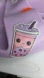 Cute purple slippers with fun drink design. Comfortable and stylish for kids.