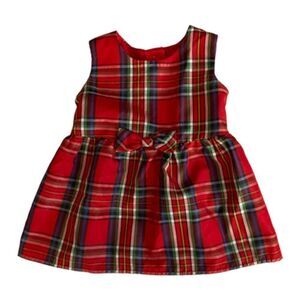 Wonder Nation Red Plaid Holiday Christmas Dress. This adorable sleeveless dress features a bow on the front, back button with matching ruffle bottoms. half Tulle lining.