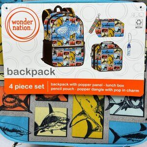 Wonder Nation Shark Backpack Kids Set 4 Piece 17' Water Resistant Padded laptop