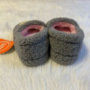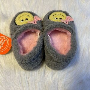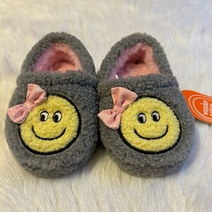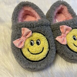 Wonder Nation Smiley Face Slippers Girls Size 5-6 Grey Fuzzy Slip On Shoes
