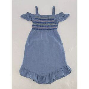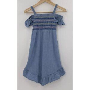 Wonder Nation Smocked Chambray Cold Shoulder Blue Dress Size 7-8 Boho Ruffles