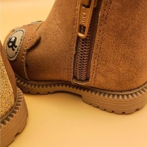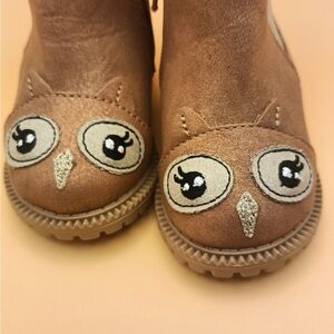 Charming tan boots with owl design. Easy side zipper. Fun and cozy for kids.