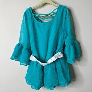 Wonder Nation Teal Belted Top Girls Large