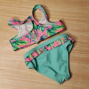Wonder Nation Toddler Girl's Green Pink Tropical Bikini 18 Months