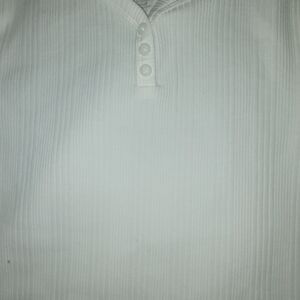 Classic white with ribbed texture. Features button closure.