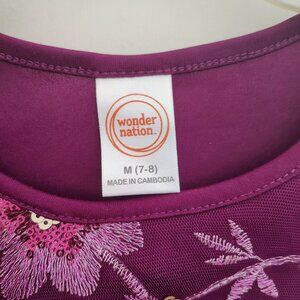 Wonder Nation plum purple floral mesh embroidered formal girls dress (M 7-8)