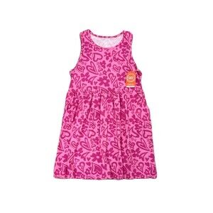 Beautiful Pink Summer Dress with Unicorns, stars, hearts & Rainbow print. It has 2 side pockets and it’s a size XL 14-16. It’s New, never worn.