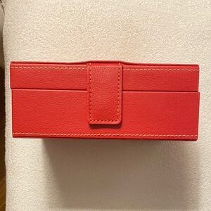Vibrant red storage box. Perfect for organizing. Durable and stylish. Measures 6” x 8”. Magnetic clasp closure.