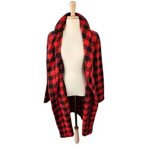 Wonder Shop Holiday Robe Red Black Plaid Poly Tie Close Hand Pockets Adult L NEW
