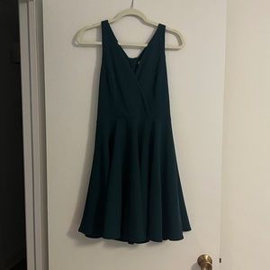 Wonder Whirl Dark Green Twist Back Skater Dress