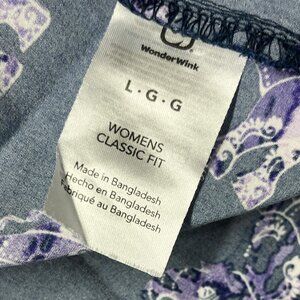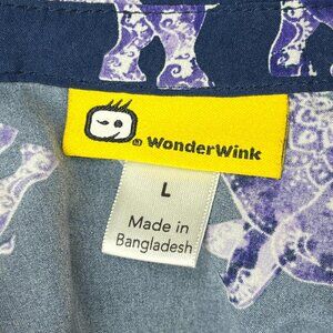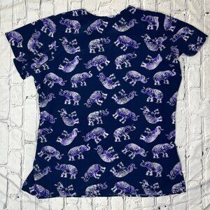 Wonder Wink Navy Purple Elephant Print Scrub Top Large