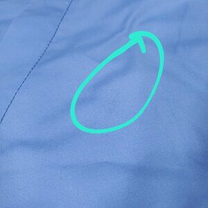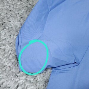 Men's Wonderwink Wonderflex v-neck scrub top in light blue. New with tags, but has a very tiny mark on one of the sleeves as shown in photo, and a small dust/dirt mark on the front from being in a retail environment, as shown. Men's size medium, real measurements shown in photos with top laid flat: