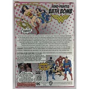 This hand painted Wonder Woman bath bomb carries the scents of Watermelon and Bubblegum. It is new in its original box.