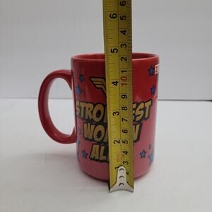 Add a touch of superhero power to your morning coffee with this Wonder Woman mug! Featuring a vibrant image of Wonder Woman and the inspiring phrase "Strongest Woman Alive," this mug is perfect for any fan.