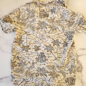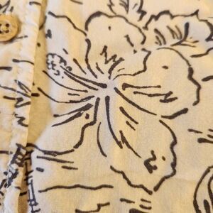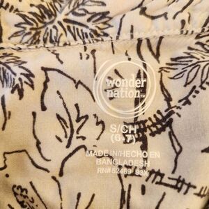 Wonder nation boys 6-7 cream taupe floral hibiscus Hawaiian button up shirt