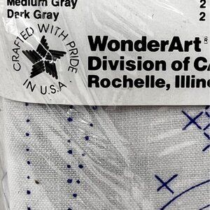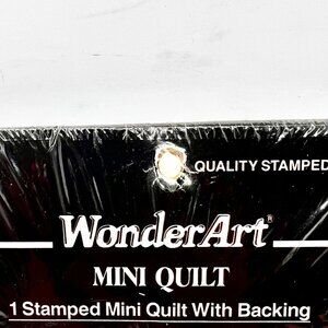 Vintage WonderArt craft kit for a wonderful handmade personal wedding or anniversary gift. . This kit includes poly cotton design stamped fabric and poly cotton fabric for backing for a 36” X 36” lap quilt or wall hanging. It does not include batting, needle, thread or binding. The thread requirements are shown in the package insert .