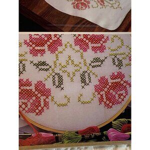 WonderArt Colonial Rose Cross Stitch Stamped Dresser Scarf - New