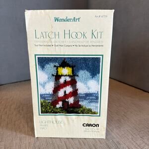 WonderArt Latch Hook Kit Caron #4709 Lighthhouse 12x12 Started