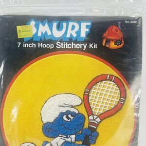 WonderArt Smurf Playing Tennis 7 Inch Hoop Stitchery Embroidery Kit Crewel