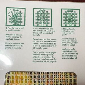 Create a vibrant sunflower with this WonderArt latch hook kit. Features bright yellow, green, and brown colors.