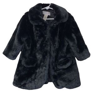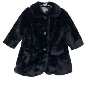 WonderKids Black Girls Toddler Faux Fur Jacket. Button is slightly loose just needs to be tightened, Button front Closure, Two front flap pockets, In excellent Preloved condition.