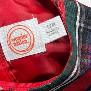 Wonder Nation Baby Girls Red A-Line Dress 12 Months Plaid Tulle Holiday Ruffle