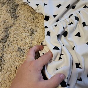 Wonder Nation white short-sleeved dress with black shape design, size 5T, 100% cotton, 2 pockets at sides, fit-n-flare, excellent condition.