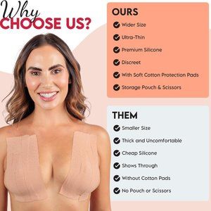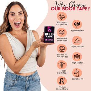 Elevate Your Confidence: Say goodbye to the constraints of traditional bras. Our boob tape offers a customizable, surgery-free solution to lift, shape, and enhance your cleavage. Perfect for any outfit, it empowers you to wear what you love with confidence.