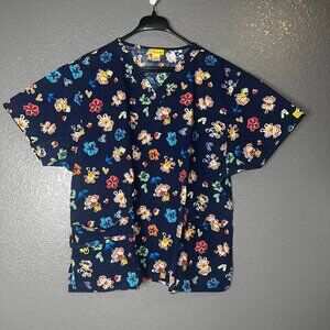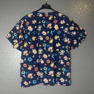 WonderWink 3X Scrub Top Navy Monkey Beach Print V-Neck Pockets