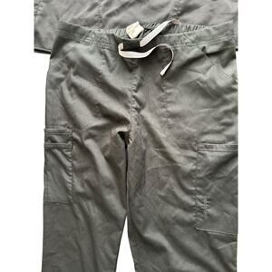 WonderWink Grace Scrub Pants. Drawstring. Flare-leg cargo pant in lightweight stretch material featuring elastic waist with full webbed drawstring and logo utility loop. One cargo pocket, two side pockets, and 1 back pocket with mock dart and bungee loop