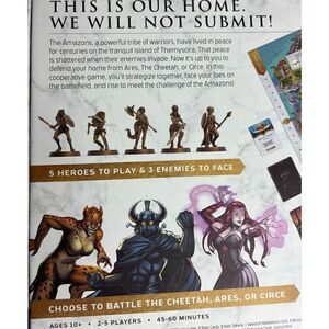 Challenge of the Amazons, you’ll strategize together, face your foes on the battlefield, and rise to meet the challenge of one of three classic Wonder Woman enemies – Ares, Circe, or The Cheetah – each with their own unique game play! 1-4 players. 45-60 minutes. Ages 10+