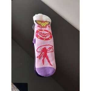 Wonder Woman Sherpa Lined Socks New with tag One size fits most Non-slip Pink with purple toe and heel WW logo