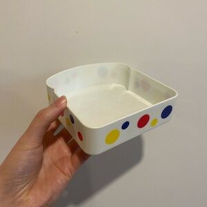wonderbread sandwich container. perfectly fits one sandwich 🥪, with embossed lid, and signature primary color polka dot design. made in china 2010, hand wash recommended. used, but in good condition!