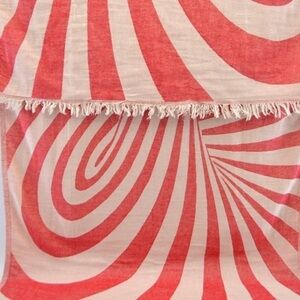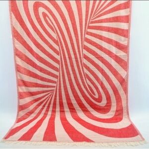 NWT ! Wonderland Textile in Red & Ivory Soft 100% Organic Cotton 35 x 68 with Eyelash Fringe. Design inspired by Alice in Wonderland for a large International convention & now available for sale on Poshmark for less 😊