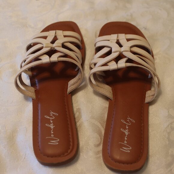 Wonderly Avery White Strappy Sandal Size 8.5 Man Made Materials Flats