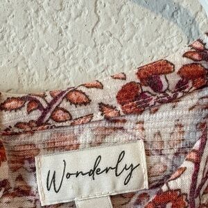 Wonderly size small puff sleeve long sleeve blouse. Floral print and button closure of back at top. Very cute and feminine. Soft blend material.