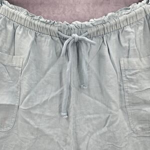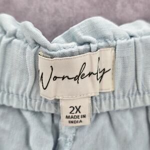 Wonderly Blue Pullon Ruffle Linen Relaxed Pants Shorts Plus 2X