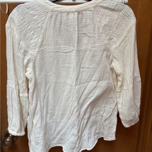 Elegant cream top with textured fabric and stylish design. Perfect for any occasion.