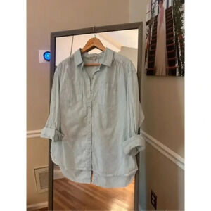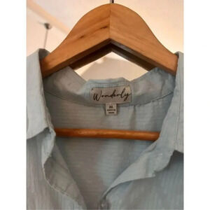 Wonderly Button Down Shirt Light Blue Size Medium 21 bust 26 length