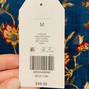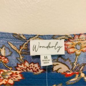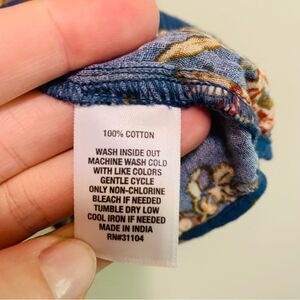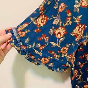 Wonderly Cotton Gauze Navy Blue Floral Square neck top size medium