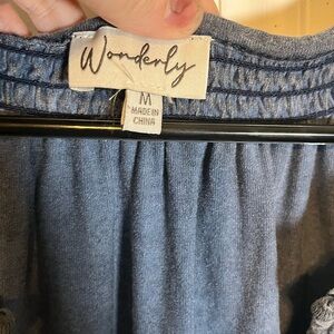 Stylish Wonderly garment in a classic blue shade. Perfect for any occasion. Super soft, does have some fading as shown in video, stretchy and does have some weight to it.