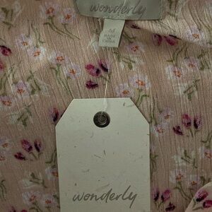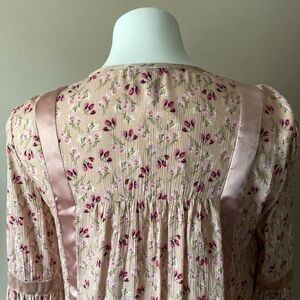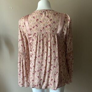 Wonderly Ditsy Pink Floral Long Sleeve Blouse Size Medium Crushed Velvet