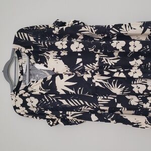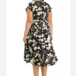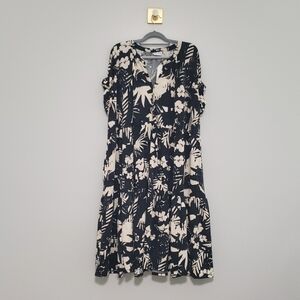 Wonderly Floral Midi Dress 4X Black Cream Soft Tropical Vacation Travel New
