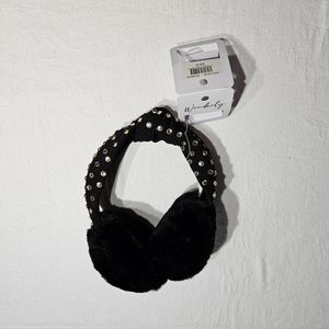 Wonderly Jewel Stud Faux Fur Earmuffs Black Knot Headband